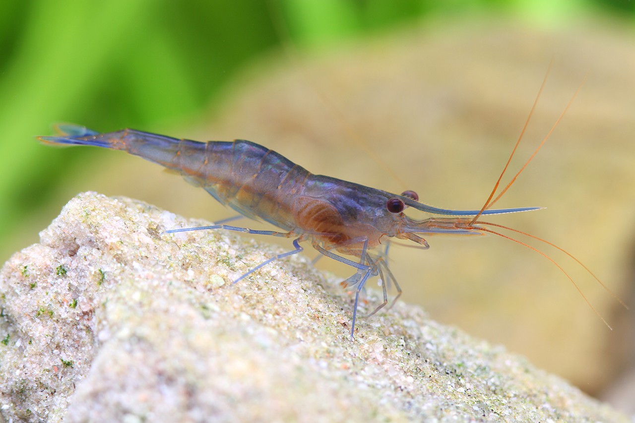 Caridina caerulea is a little fresh water crustacea from the Asia.