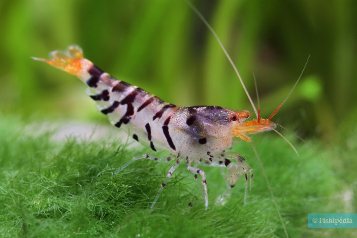 Caridina mariae “Super Tiger“ is a crustacea living in colonies naturally found on the bottom. This species is scavenger . Measuring only a few centimeters, this small species tends to be discreet and hide in the presence of larger neighbors.