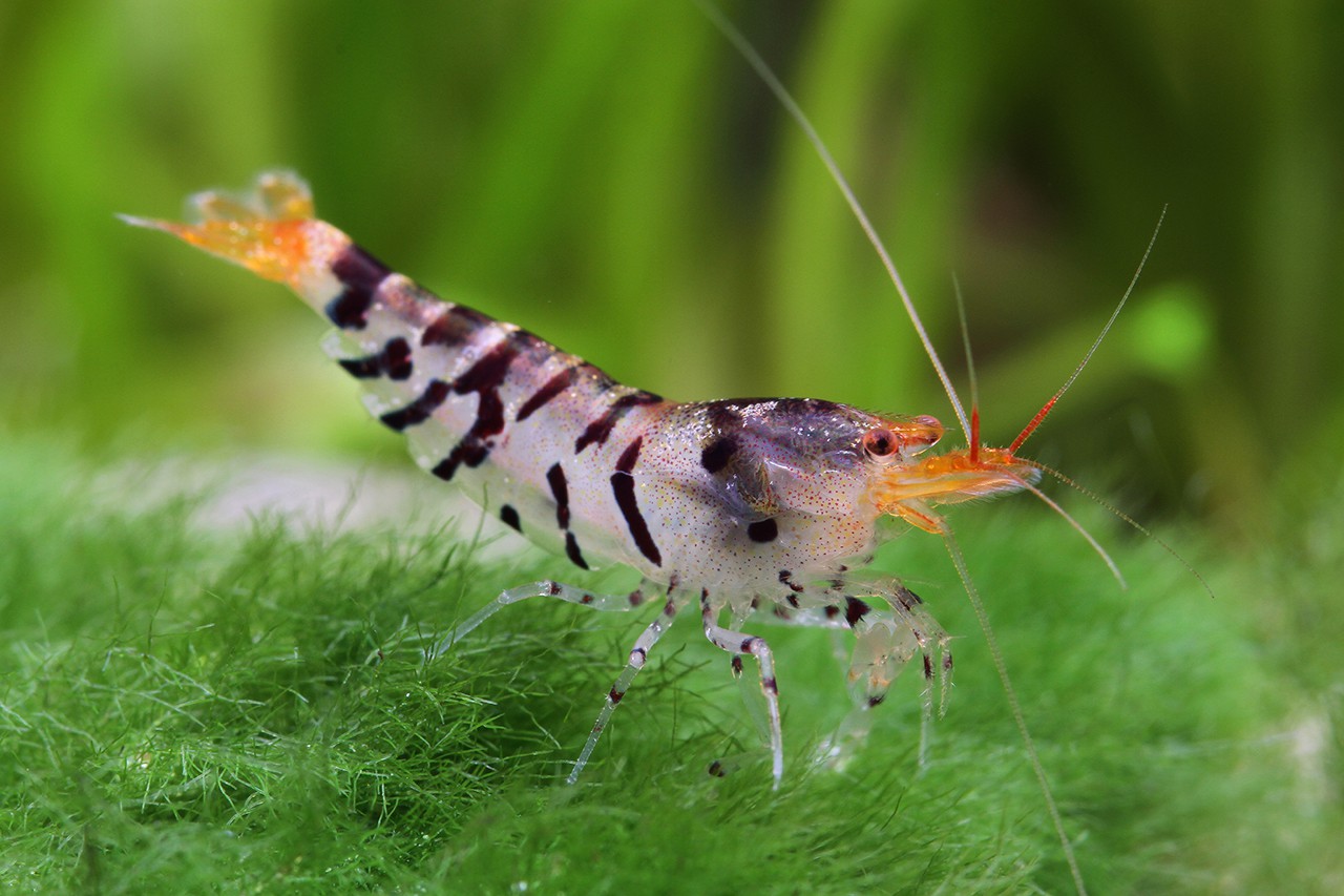 Caridina mariae “Super Tiger“ is a little fresh water crustacea from the Asia.