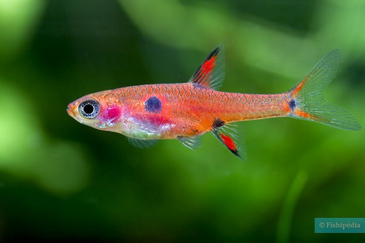 The dwarf rasbora is a fish living in shoals naturally found mid-depth and near surface. This species is omnivorous . Measuring only a few centimeters, this small species tends to be discreet and hide in the presence of larger neighbors.