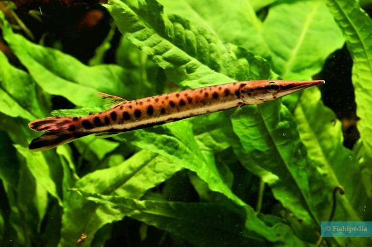 Boulengerella maculata living naturally in acidic water, generally in "black" or "sieved" water, the implementation of a filtration on peat is ideal for its balance. Adding decaying leaves and alder fruit can significantly improve living conditions by naturally increasing acidity of some water.Tips for feeding