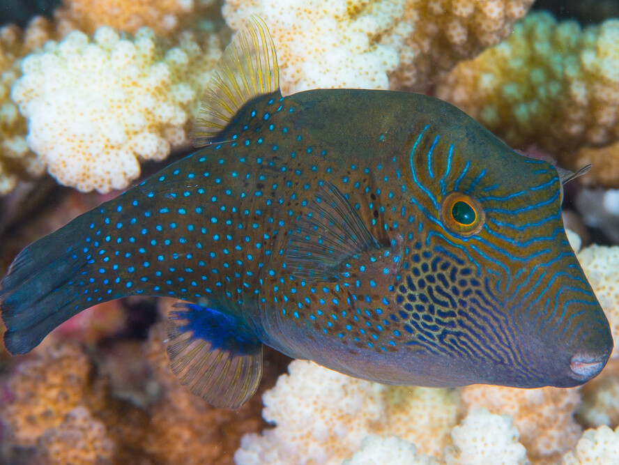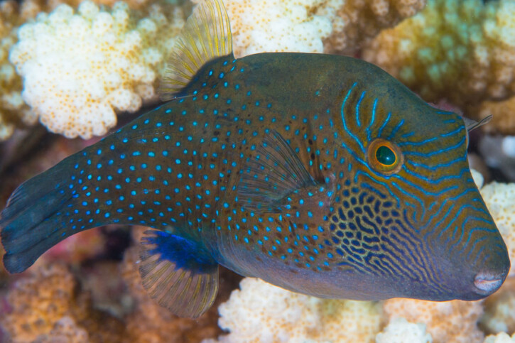 This species belongs to the group of pufferfish. These fish are nicknamed like this because they have the ability to inflate themselves when they feel threatened.