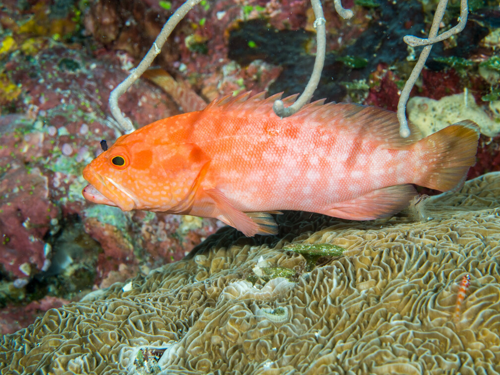 Cephalopholis spiloparaea measures around 20 cm. The dominant males can however reach 30 cm. This fish is unicolore with a predominantly rouge body.
