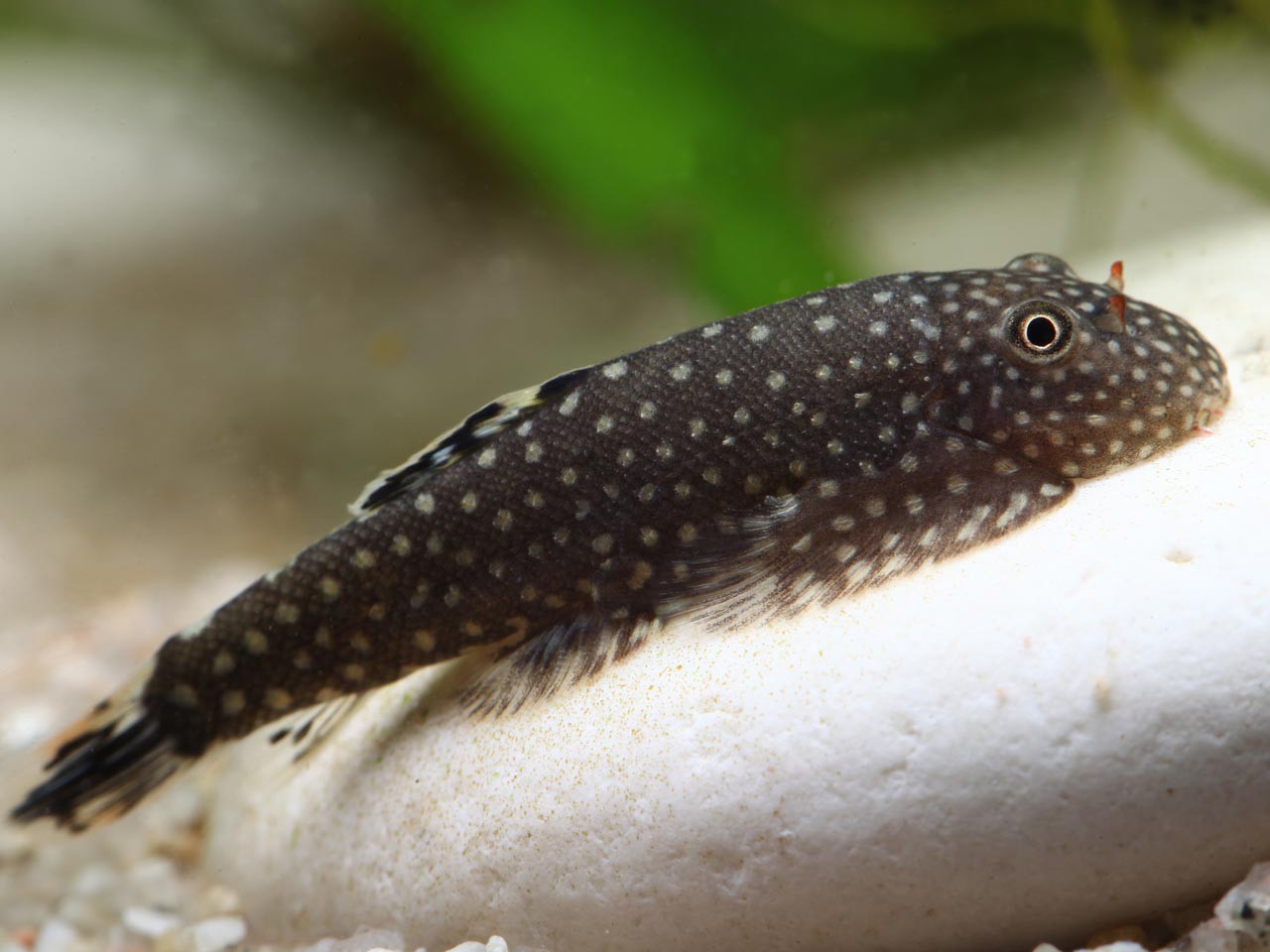 Gastromyzon punctulatus measures between 4 and 6 cm.
