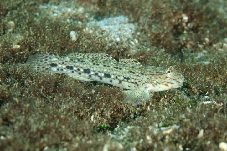 Istigobius decoratus measures between 9 and 13 cm. This fish is bicolore with a predominantly marron and beige body. The also has marron mottling.