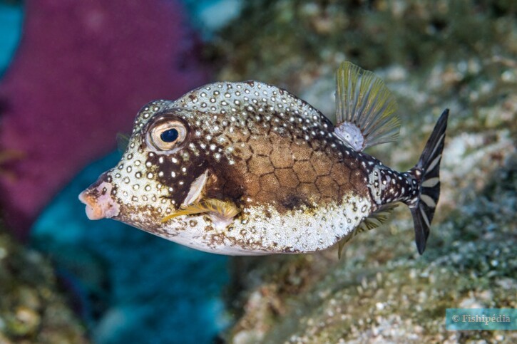 Lactophrys triqueter measures between 25 and 47 cm. This fish is bicolore with a predominantly noir and blanc body. The also has blanc ponctuations.