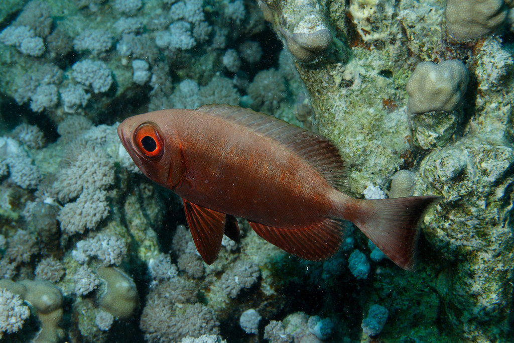 Priacanthus hamrur, commonly known as moontail bullseye, is a salt water fish.