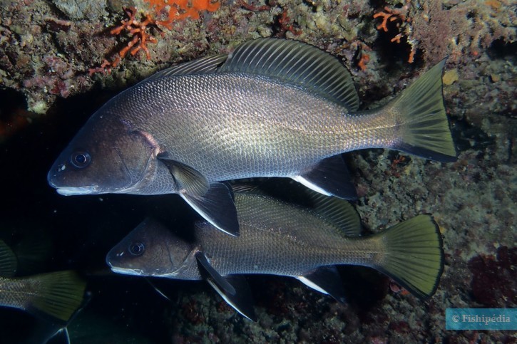 The brown meagre is a fish that lives in groups of varying sizes. It moves slowly and sometimes remains still near the bottom, cliffs, or in underwater caves.
