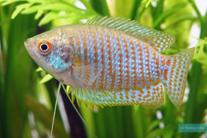 Trichogaster lalius is a fish living as a couple or alone naturally found at mid-depth. This species is carnivorous .