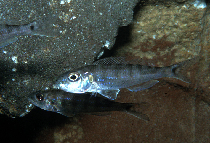 Xenotilapia tenuidentata is a fish ovipare incubateur buccal. In this species, the dominant males are polygamous and reproduce each season with several females.