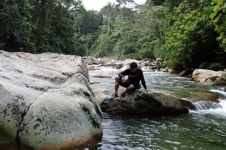The location is ideal because it is situated between the clear waters of the torrents of the Andean foothills and the generally less transparent wide rivers that flow through the rainforest. During periods of favorable weather, it is possible to capture rare photographs when the waters of the latter are crystal clear.