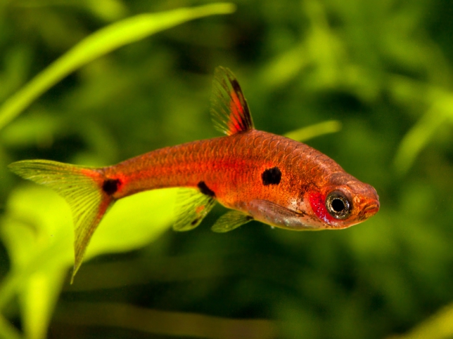 Parmi les plus petits poissons d’eau douce au monde, cette espèce est facile à reconnaître à son motif qui rappelle une galaxie. Le corps comprend entre cinq et six rangées de taches dorées sur un fond bleu métallique.