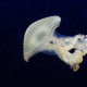 Phyllorhiza punctata measures between 40 and 70 cm. This cnidarian is unicolore with a predominantly bleu, beige and gris body. The also has blanc ponctuations.