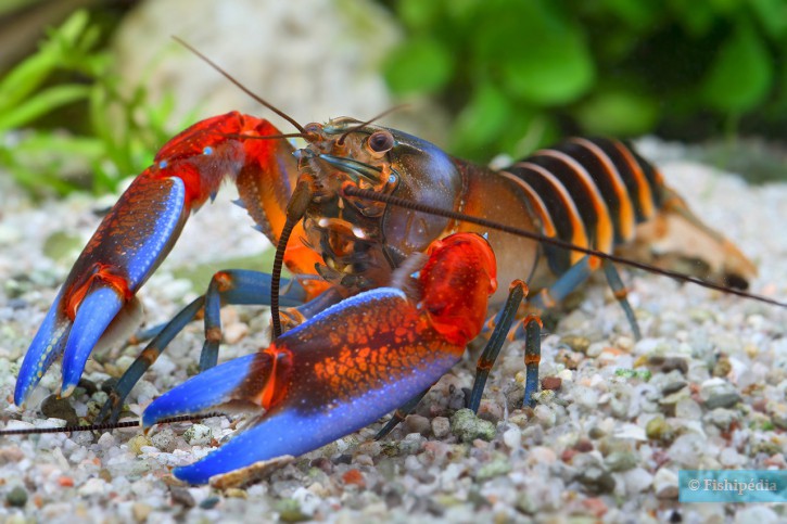 Cherax peknyi blue Claw is a crustacea living in small groups naturally found on the bottom. This species is omnivorous . Naturally, it tends to dig into the sand and transform its environment. this crustacea lives mainly at night. Usually, it leaves its hiding place and starts to be active once it gets dark.