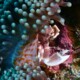 Neopetrolisthes maculatus is a crustacea living as a couple or alone. This species is scavenger .