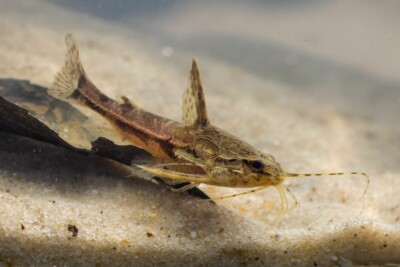 This fish has the particularity to possess several pairs of barbels, which allow him to search the bottom and to detect the food thus moved.
