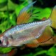 Alestopetersius nigropterus measures around 6 cm. The dominant males can however reach 8 cm. This fish is unicolore with a predominantly argent body. The also has noir horizontal stripes.