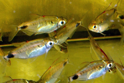 The blue diamond characin is a fish living in shoals naturally found near to the surface. This species is omnivorous with carnivorous tendency .