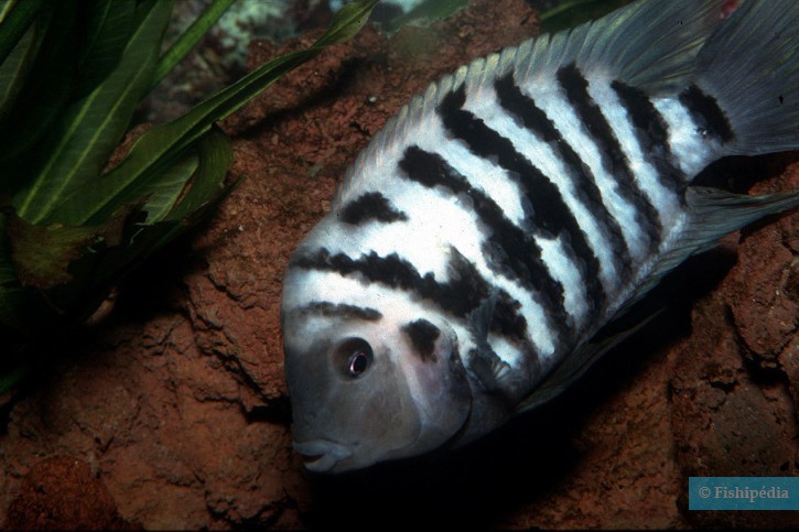 Amatitlania nigrofasciata, also known as convict cichlid, is a small cichlid from Central America that is popular in the aquarium hobby. Recognizable by its compact, striped body, it is famous for its strong territorial behavior and highly developed parental care. It is regularly used as a model species in behavioral studies.