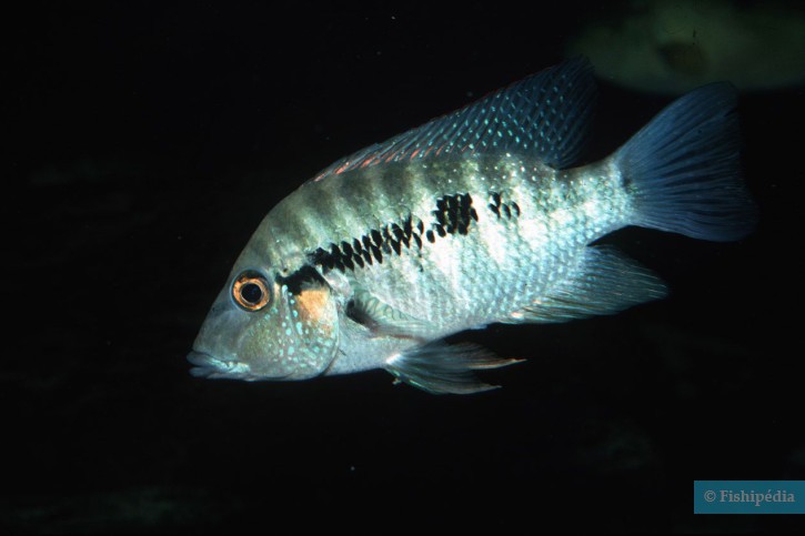 The false firemouth cichlid is a fish living as a couple naturally found near the bottom. This species is omnivorous with carnivorous tendency . Naturally, it tends to dig into the sand and transform its environment.