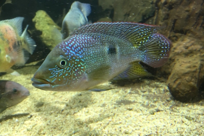 The false firemouth cichlid naturally living in basic water, the presence of limestone rocks such as millstone or travertine will improve its environment. It is also advisable to add sand with a contribution of specific salts to stabilize the pH, to be gauged according to the hardness of the water used.Tips for feeding