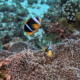 Amphiprion allardi is a territorial animal that does not tolerate any incursions into its living area. It is particularly virulent against other territorial species and it can provoke heated fights. Relationships between conspecifics are also hectic, with each seeking to secure its place.