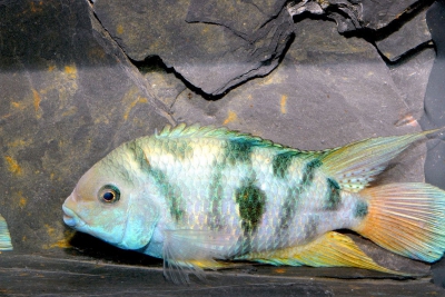 This species tends to be easily stressed: this uneasiness is characterized by the appearance of marked black bars on its whole body.