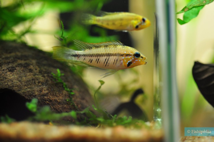 Apistogramma fishes generally inhabit edges of streams or rivers, in waters of shallow depth and with leaf litter on the bottom. They can be found in all kinds of waters (clear waters, dark waters, white water streams). These territorial small fishes take good care of their offsprings. Sociability varies from one species to the other.