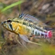 Apistogramma hongsloi measures between 5 and 7 cm.