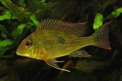 The bujurqui is a fish living as a couple naturally found near the bottom. This species is omnivorous with carnivorous tendency .