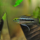 Apistogramma trifasciata measures between 4 and 6 cm. This fish is tricolore with a predominantly bleu, argent and noir body.