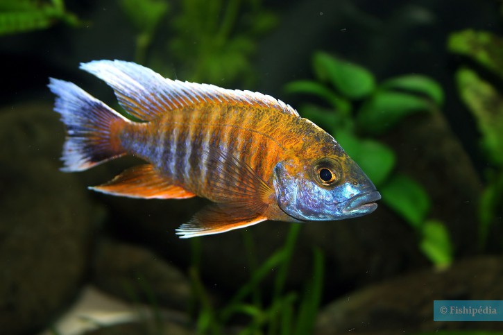 Aulonocara jacobfreibergi "Otter Point" is a fish ovipare incubateur buccal. In this species, the dominant males are polygamous and reproduce each season with several females.