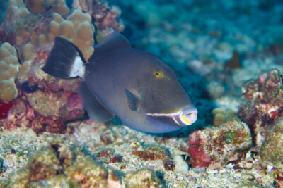 The Titan triggerfish, commonly known as titan triggerfish or yellowmargin triggerfish, is a tropical demersal fish found from the Red Sea to the southern tip of New Caledonia. Highly territorial, it is known to attack, sometimes aggressively, divers who approach its territory.