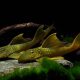 Baryancistrus demantoides measures between 15 and 20 cm. This fish is bicolore with a predominantly vert and marron body.