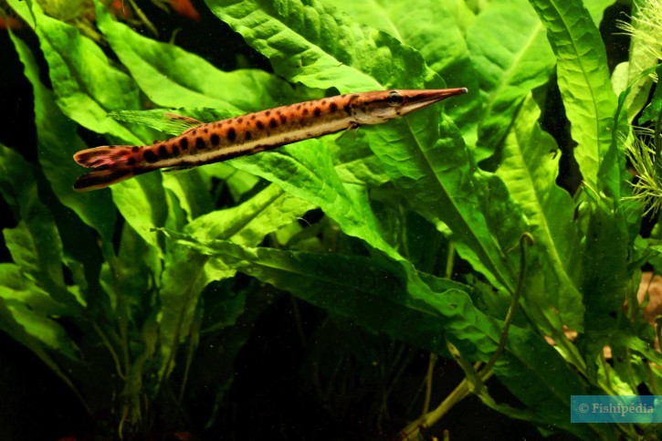 Boulengerella maculata is a fish that generally lives in groups outside of the reproduction periods. If you want to reproduce them and have a good chance of forming a couple, it is recommended to keep at least 5 individuals.. In a community aquarium, the chances of survival of the larvae are almost null. After a few spawns, it is preferable to isolate the couple or to separate from the other members of the group.