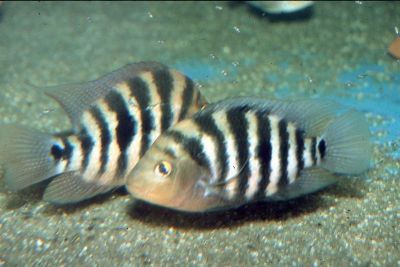 Buccochromis rhoadesii is a fish living as a couple naturally found on the bottom. This species is carnivorous . Naturally, it tends to dig into the sand and transform its environment.