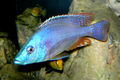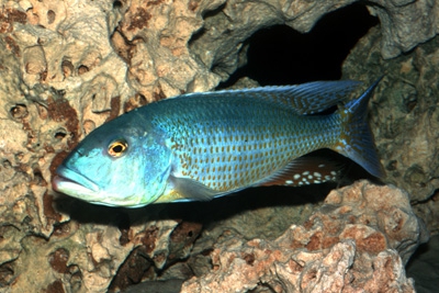 Buccochromis rhoadesii is a territorial animal that does not tolerate any incursions into its living area. It is particularly virulent against other territorial species and it can provoke heated fights. In a constant quest for dominance, the dominant males of this species cannot stand each other. The battle between two individuals can be intense and violent. It will result in the submission and sometimes even death of one of the protagonists.