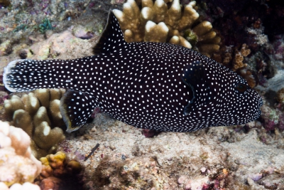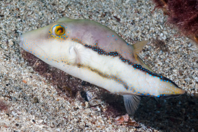 This species belongs to the group of pufferfish. These fish are nicknamed like this because they have the ability to inflate themselves when they feel threatened.