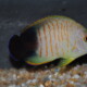 The blacktail angelfish measures around 10 cm. The dominant males can however reach 15 cm. This fish is tricolore with a predominantly jaune, orange, noir and gris body.