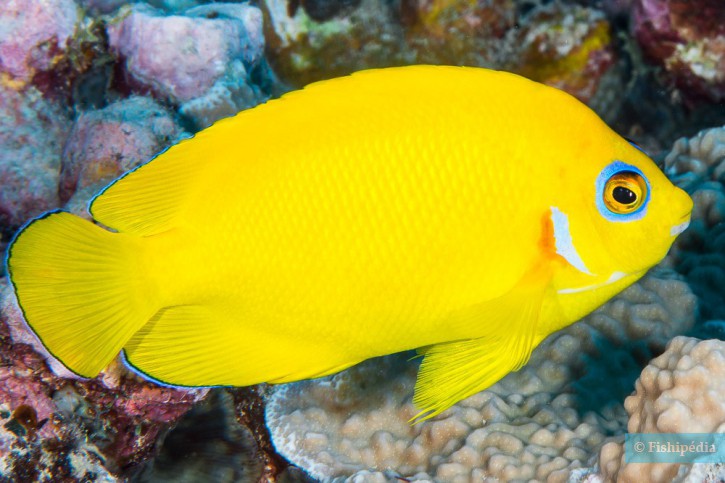 The lemon angel-fish is a fish living as a couple or alone naturally found at mid-depth and near the bottom. This species is omnivorous with alguivorous tendency .