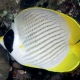 The Philippine butterflyfish is two-colored with a mostly yellow and white pattern. It is covered with greyish orange diagonal stripes.