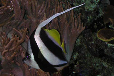 The lined butterflyfish (Chaetodon lineolatus) is a species of butterflyfish found from the Red Sea to Micronesia. It is easily recognizable by its black vertical stripes. It is also the largest species in the Chaetodon genus.
