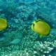 The decorated butterflyfish is a fish living as a couple or in a group naturally found near the bottom. This species is omnivorous .