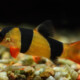 The Clown loach is a fish living in scattered groups. Adults are mainly found in the bottom of rivers and canals. They are sometimes found hidden under rocks, in submerged woods or in holes in the mud.