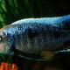 Copadichromis chrysonotus measures between 16 and 17 cm. This fish is unicolore with a predominantly bleu body.