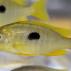 Copadichromis pleurostigma measures between 19 and 20 cm. This fish is bicolore with a predominantly jaune, bleu, noir and or body.