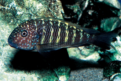 This species tends to be easily stressed: this uneasiness is characterized by the appearance of marked black bars on its whole body.