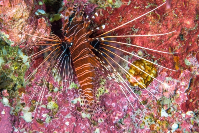 The urchin clingfish is a fish living as a couple or alone. This species is planctophage . Measuring only a few centimeters, this small species tends to be discreet and hide in the presence of larger neighbors.