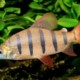 The body is red, marked with 6 to 7 transverse black bands, the first on the nape and the last on the caudal peduncle.