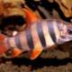 The D. sexfasciatus is primarily herbivorous but also feeds on worms and other invertebrates living at the bottom. It can be considered an omnivore with a herbivorous dominance.